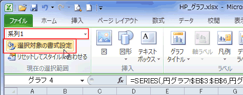 - 系列をダブルクリックするか、「系列1」を選択して「選択対象の書式設定]を実行します。