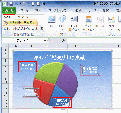 - 系列の要素部分をクリックします。するとすべての要素が選択されますので、鹿児島支店部分を再度クリックします。