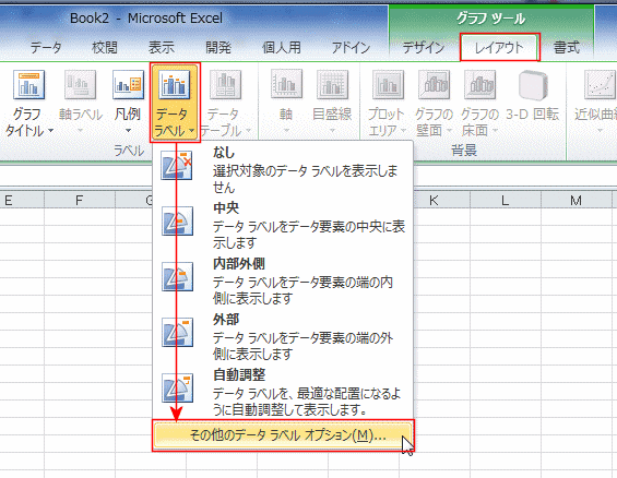 [データラベル]→[その他のデータラベル オプション]を選択します。