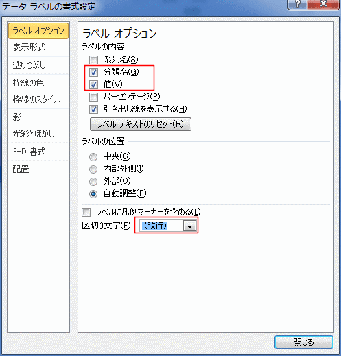 - ラベルの内容で「分類名」と「値」にチェックを入れています。