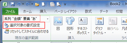 レイアウトタブの[選択対象の書式設定]を実行します。