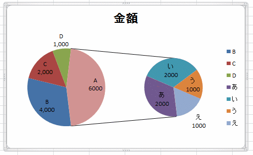 - 円グラフの中のある要素の内訳を補助円グラフにする方法です。