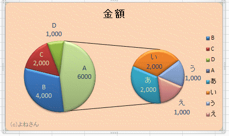 よねさんのExcelとWordの使い方|エクセル2010基本講座:目次|グラフの使い方|補助円グラフ付き円グラフの作成
