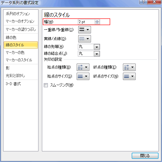 - 「線のスタイル」で幅を「2pt」に設定しました。