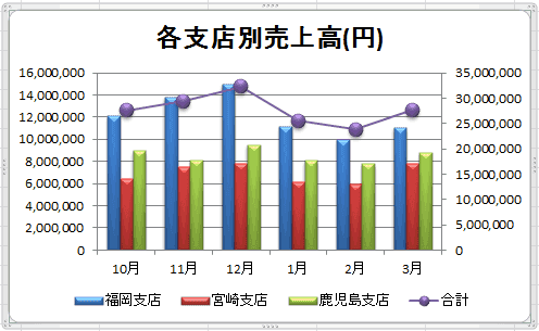 よねさんのExcelとWordの使い方|エクセル2010基本講座:目次|グラフの使い方|縦棒グラフと折れ線グラフの複合グラフの作成