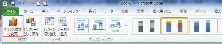 - グラフツール リボンの[デザイン]タブで[グラフの種類の変更]を実行します。