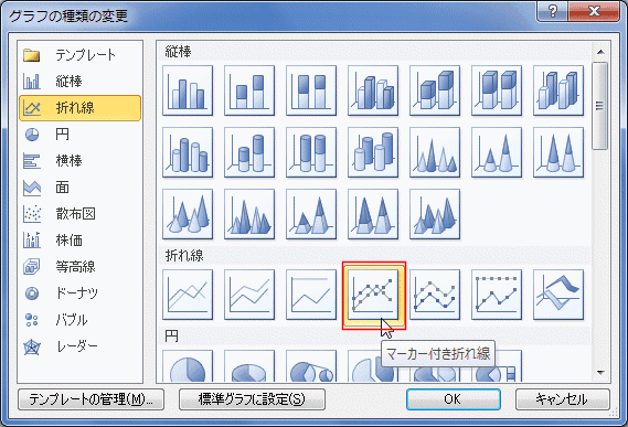 - 「マーカー付き折れ線」を選択して[OK]ボタンをクリックします。