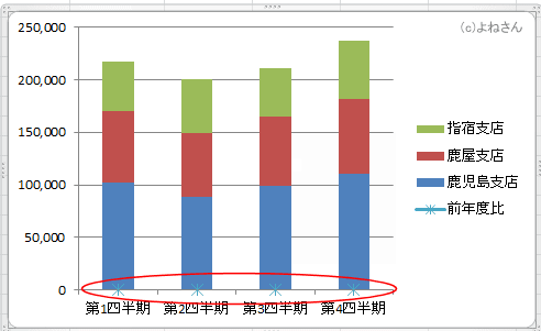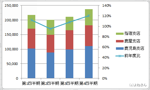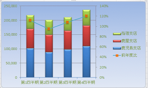 よねさんのExcelとWordの使い方|エクセル2010基本講座:目次|グラフの使い方|積み上げ縦棒グラフと折れ線グラフの作成