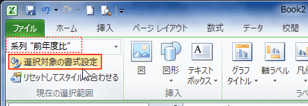 グラフツール リボンの[レイアウト]タブで[系列"前年度比"]を選択します。