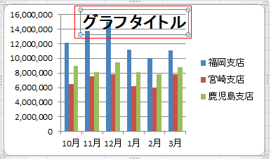 - グラフタイトルを選択します。 (枠が直線表示されている状態です)