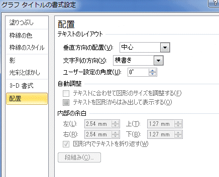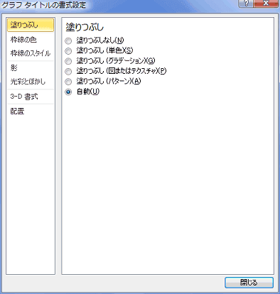 - グラフタイトルをダブルクリックして、書式設定 ダイアログボックスを開きます。