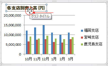 - グラフタイトルの枠線にマウスポインタを重ねます。