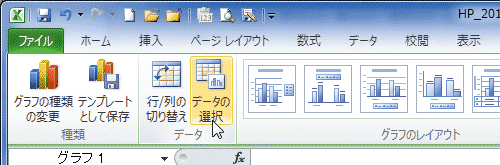 [データ]グループにある[データの選択]を実行します。