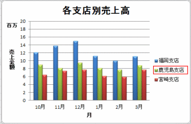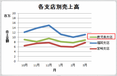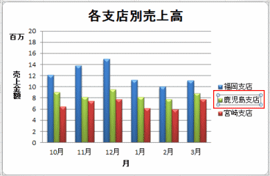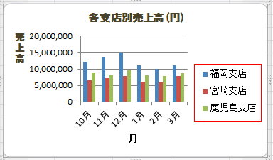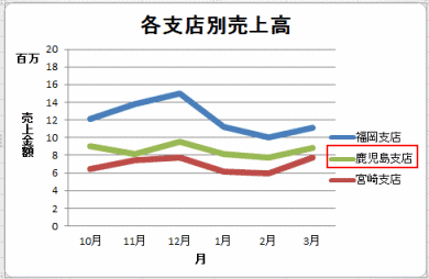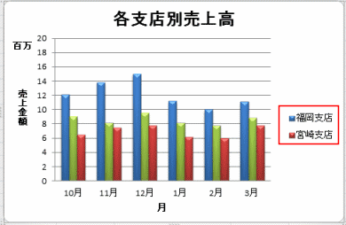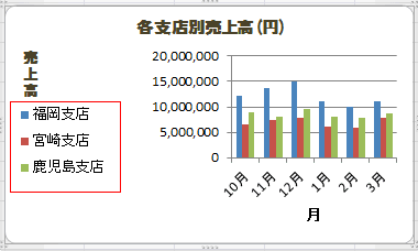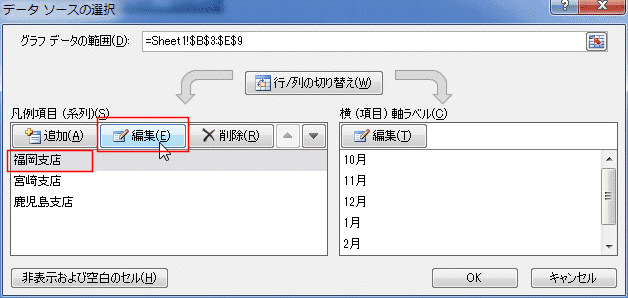 - 凡例項目(系列)「福岡支店」を選択して、[編集]ボタンをクリックします。
