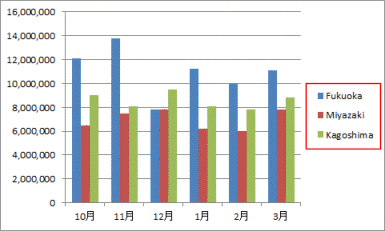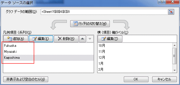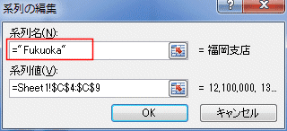 - 系列名に ="Fukuoka" と文字列を指定します。
