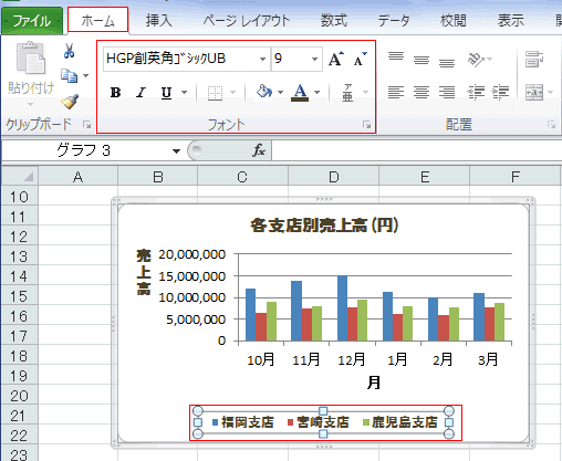 - 凡例のフォントやサイズは[ホーム]タブから実行できます。