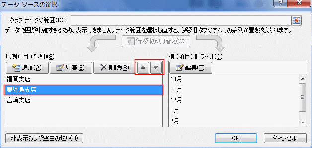 - 順序を変更するデータ系列を選択し、[▲][▼]ボタンで順番を移動します。