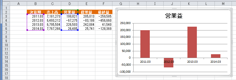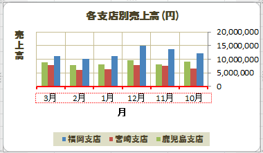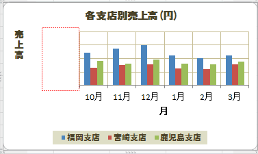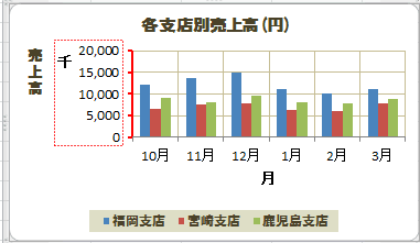 - 軸目盛が1000単位で表示されます。単位「千」の文字も合わせて表示されています。