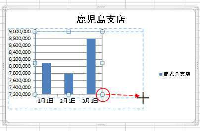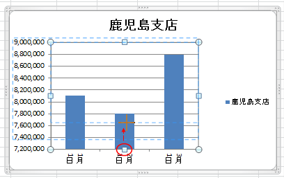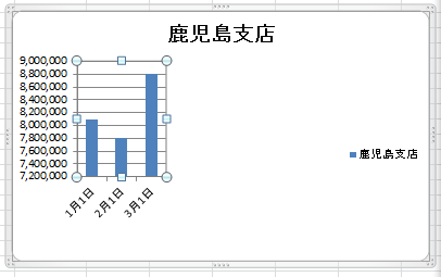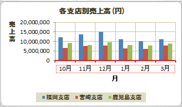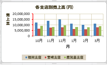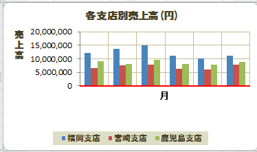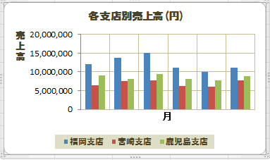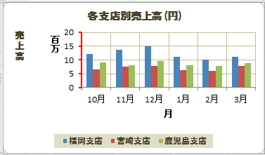 - 軸目盛が百万単位で表示されます。単位「百万」の文字も合わせて表示されています。