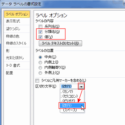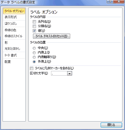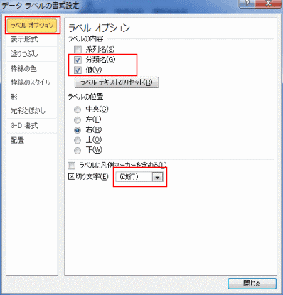 - ラベル オプションを選択して、「分類名」「値」にチェックを入れています。