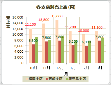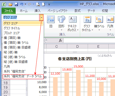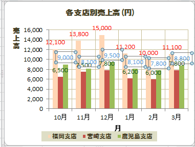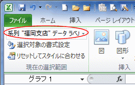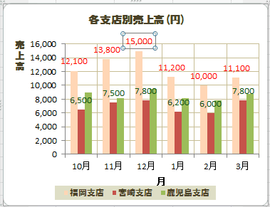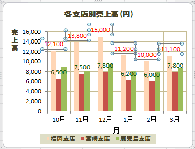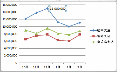 下図は系列「福岡支店」のデータラベルを選択しています。