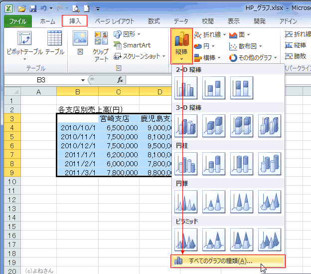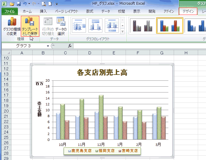 よねさんのExcelとWordの使い方|エクセル2010基本講座:目次|グラフの使い方|グラフのテンプレートを作成する