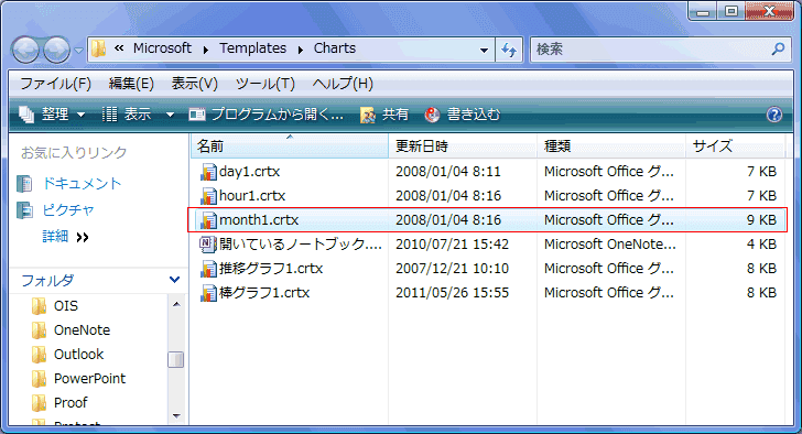 - Windows Vistaの場合、Templatesフォルダ内のChartsフォルダが開きます。