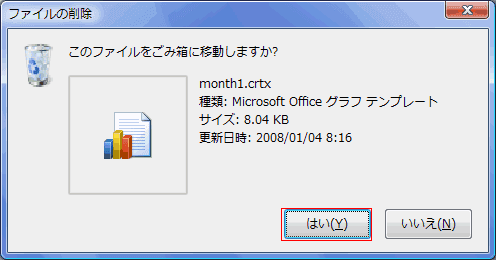 - 削除の確認画面が表示されますので、[はい]ボタンをクリックするとゴミ箱へ移動されます。