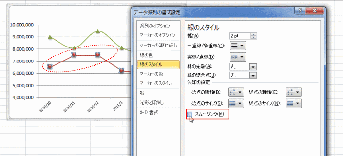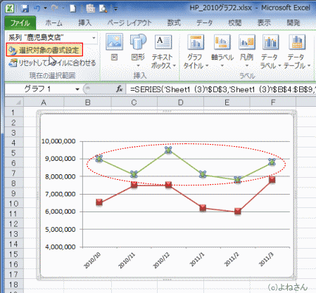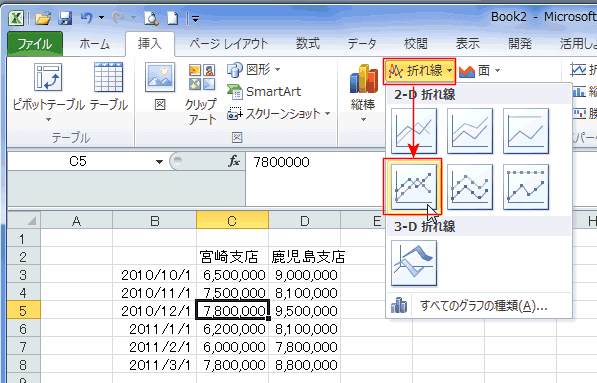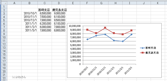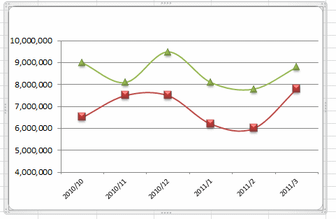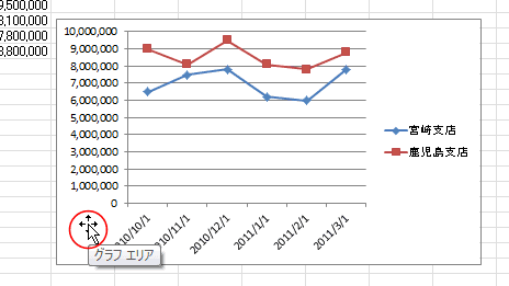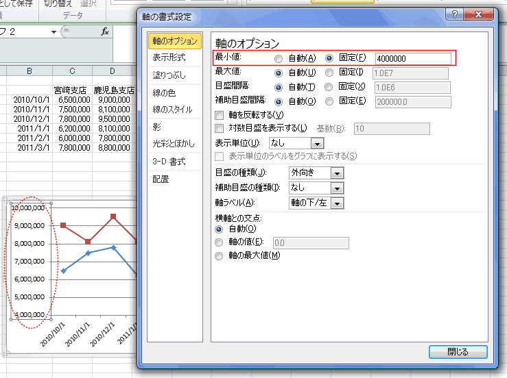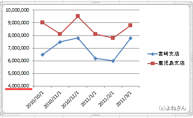 | 折れ線グラフの作成 | 折れ線グラフを移動する | 縦軸の最小値を変更する |