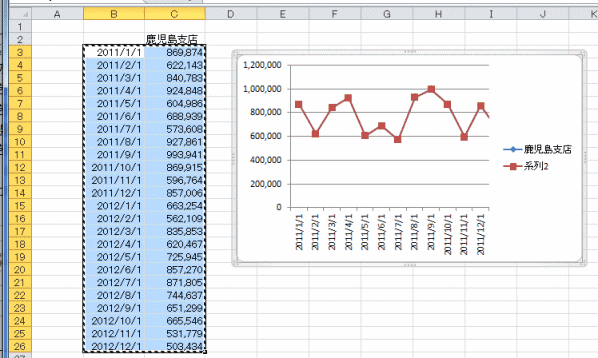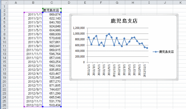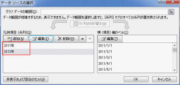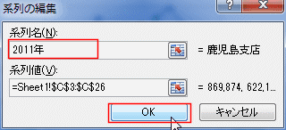 - 系列名に「2011年」と入力して[OK]ボタンをクリックします。