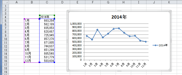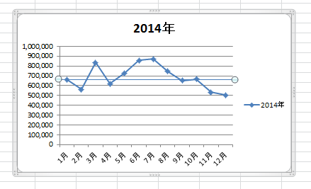 - 下図のように各年ごとのデータリストを作成して、折れ線グラフを作成しました。