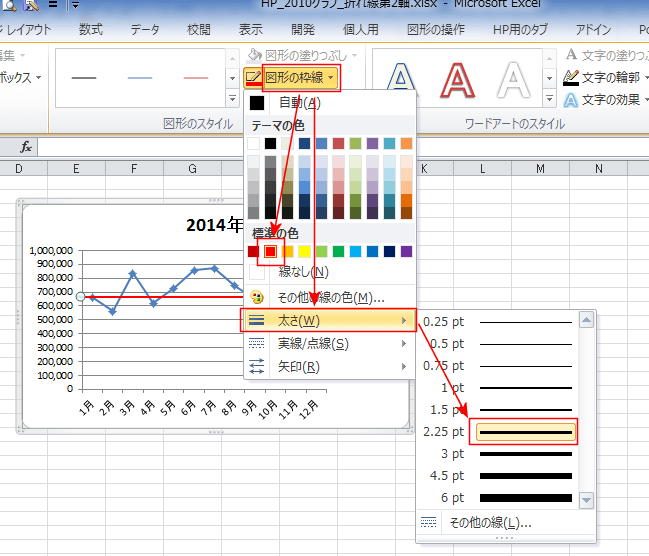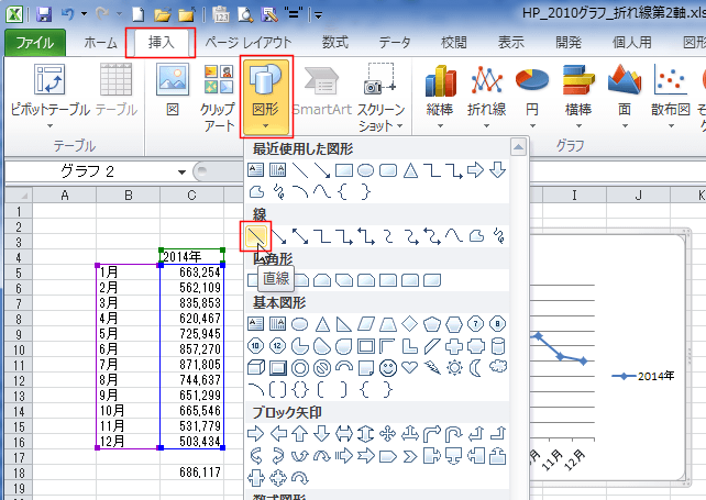 よねさんのExcelとWordの使い方|エクセル2010基本講座:目次|グラフの使い方|折れ線グラフに直線を入れたい