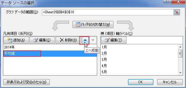 - 平均値を選択して、「上へ移動」ボタンをクリックします。