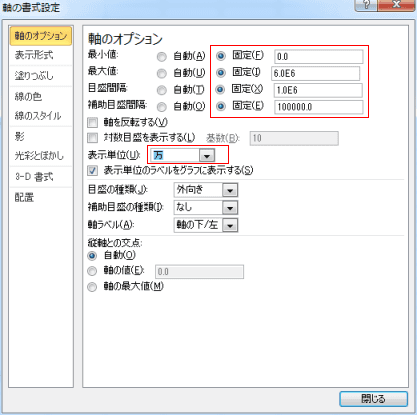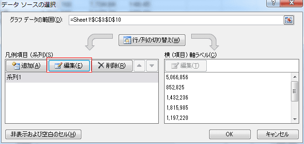 | 横軸/縦軸の設定を変更する | 横軸/縦軸を入れ替える |