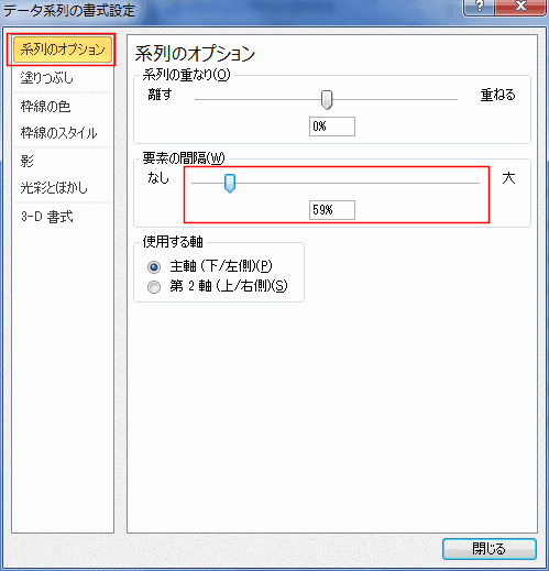 [系列のオプション]を選択し、要素の間隔で設定します。