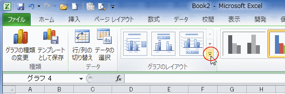 グラフツール リボンの[デザイン]タブにある[グラフのレイアウト]の[▼]ボタンをクリックして、リストを展開します。