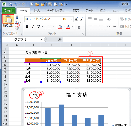 - グラフエリアを選択して、[貼り付け]を実行します。