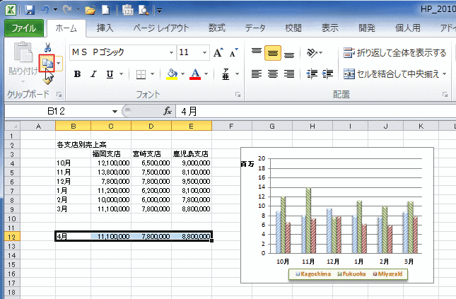 よねさんのExcelとWordの使い方|エクセル2010基本講座:目次|グラフの使い方|エクセル2010 基本講座:グラフにデータを簡単に追加する