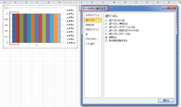「系列1」をダブルクリックして、「データ系列の書式設定」ダイアログボックスを表示します。