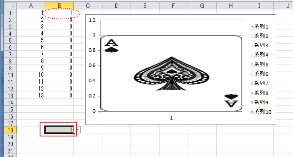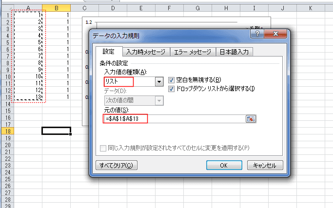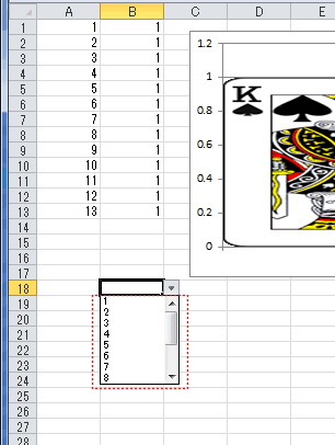 - B18セルをクリックして、1〜13を選択することができるようになりました。