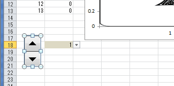 - シート上でドラッグして、スピンボタンを挿入しました。