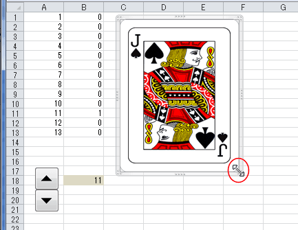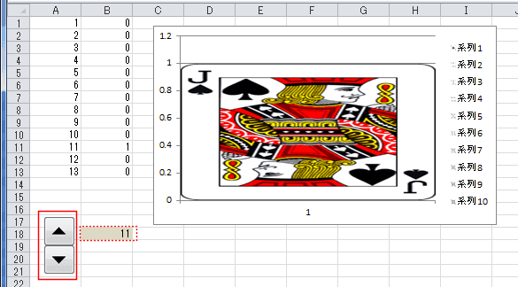 - スピンボタンをクリックすると、B18セルの値が変化して画像が切り替わりました。