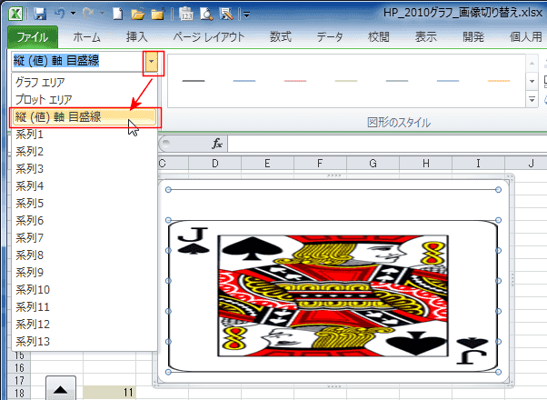 よねさんのExcelとWordの使い方|エクセル2010基本講座:目次|グラフの使い方|図(写真や画像)や図形の操作|グラフを利用して画像を切り替える