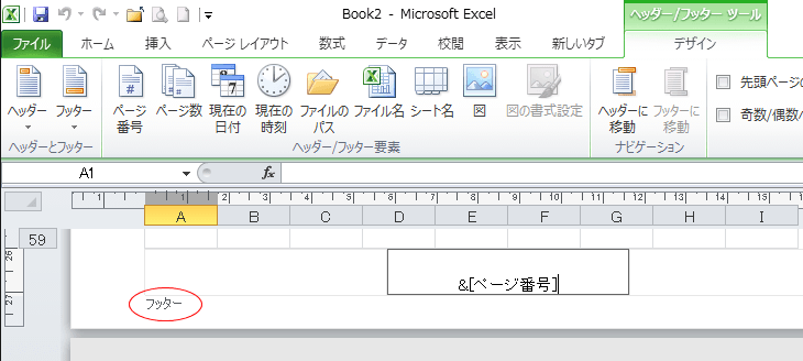 フッターに設定したいときはとなるの[フッター]ボタンから操作します。