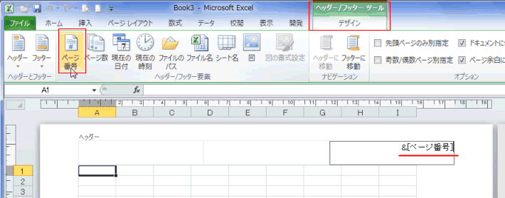 (例では[ページ番号]を挿入した状態です)