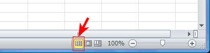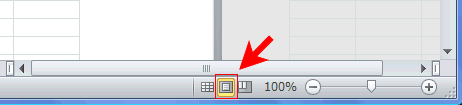 ステータスバーの右下端にある画面表示モードで[ページレイアウト]を選択します。