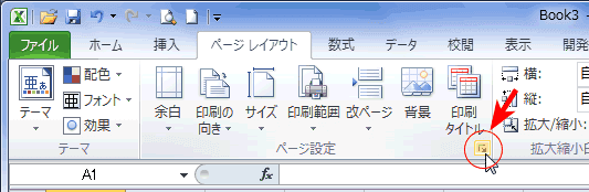 ダイアログを表示するには[ページレイアウト]タブの[ページ設定]グループでダイアログボックスランチャーをクリックします。