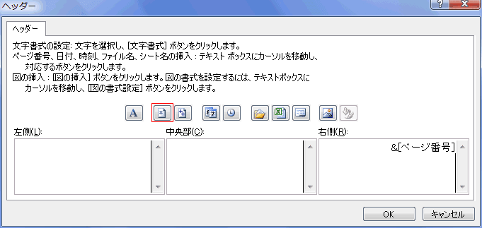 表示する位置を左側、中央部、右側の欄内をクリックして選択します。