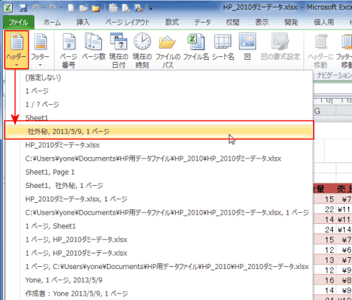 エクセル2010基本講座:ヘッダーとフッター