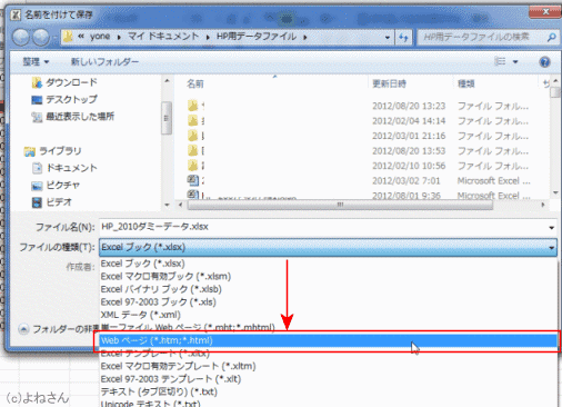 よねさんのExcelとWordの使い方|エクセル2010基本講座:目次|ブックの操作とブックの共有|Webページとして保存する